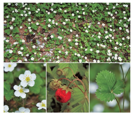 ●描述:多年生草本。茎被开展柔毛,稀脱落近无毛。叶为3枚小叶,稀羽状5枚小叶;小叶倒卵形、椭圆形或宽卵形,先端圆钝,顶生小叶基部楔形,侧生小叶基部楔形,具缺刻状锯齿,上面疏被短柔毛,下面被短柔毛,沿中脉较密,或有时脱落近无毛。聚伞状花序,有2~4朵花,基部具有柄小叶或为淡绿色钻形苞片,花梗被紧贴柔毛;萼片卵状披针形;副萼片窄披针形或钻形;花瓣白色;雄蕊20枚,雌蕊多数。聚合果卵圆形,熟时红色;宿萼水平开展。
