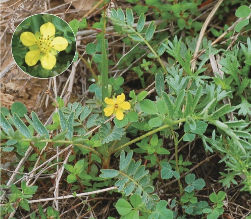 ●描述:多年生草本或亚灌木。花茎直立或上升;基生叶羽状复叶,有5~8对小叶,最上面2~3对小叶基部下延与叶轴贴合,小叶对生,稀互生,椭圆形或倒卵状椭圆形,先端2~3裂,基部楔形或宽楔形,下部叶的托叶膜质;上部茎生叶的托叶草质,有齿或全缘。近伞形状聚伞花序,顶生;萼片卵形,先端渐尖,副萼片椭圆形,先端急尖或钝;花瓣黄色,倒卵形。