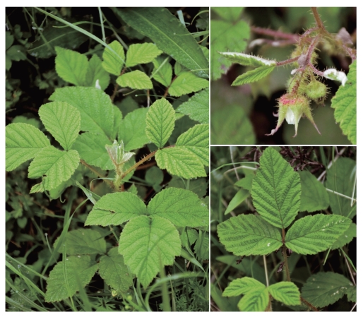 ●描述:矮小灌木或近草本状。枝被紫红色针刺、柔毛和腺毛。小叶3枚,稀5枚,卵形或椭圆形,顶端急尖至短渐尖,基部宽楔形至近圆形,顶生小叶基部近截形,边缘有不规则粗锯齿或重锯齿;托叶线形或线状披针形,具柔毛和腺毛。花下垂,常单生或2~3朵生于枝顶;花萼带紫红色;萼筒浅杯状;萼片长卵形或卵状披针形,顶端渐尖至尾尖,花后直立;花瓣宽椭圆形或匙形,白色,具柔毛,基部有短。果实近球形,红色,被绒毛。