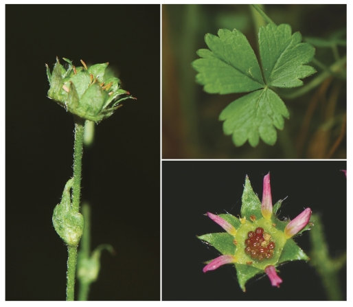 ●描述:多年生草本。花茎密被短柔毛。基生叶三出复叶,叶柄被伏生疏柔毛,小叶椭圆形或倒卵形,顶端圆钝,基部几圆形或阔楔形,边缘有缺刻状锯齿,锯齿急尖,两面绿色,无茎生叶;托叶膜质,褐色。伞房状聚伞花序多花;萼片卵状三角形,顶端渐尖,副萼片披针形,顶端渐尖至急尖;花瓣粉红色,狭窄,长圆形,顶端圆钝,与萼片近等长;雄蕊5枚,插生于花盘外,花盘宽阔,5~6裂。