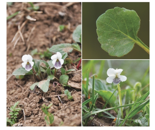 ●描述:多年生草本。根状茎细长,垂直,具多数细根,下部具一小鳞茎,由4~6枚白色、肉质、船形的鳞片所组成,下部生多数须状根。叶簇集茎端;叶片长圆状卵形或近圆形,先端圆或有时急尖,基部楔形或浅心形,边缘具明显的波状圆齿,无毛或下面特别是幼叶有白色柔毛;叶柄具狭翅。花小,白色;花梗中部以上有2枚线形小苞片;萼片卵形或长圆形,先端尖,基部附属物短而圆;花瓣倒卵形,下方花瓣有紫堇色条纹,先端有微缺;距短而粗,呈囊状,末端钝。