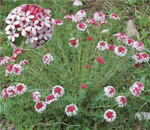 ●描述:多年生草本。茎直立,丛生,基部木质化。叶散生,稀对生或近轮生,薄纸质,披针形或长圆状披针形,稀长圆形,先端渐尖或急尖,稀钝形,基部圆形至钝形或楔形,上面绿色,下面淡绿色至灰绿色;叶柄基部具关节。花白色、黄色至带紫色,芳香,多花的头状花序,顶生,圆球形;具绿色叶状总苞片;无花梗;花萼筒细瘦,裂片5枚,卵状长圆形,顶端圆形,稀截形,常具紫红色的网状脉纹;雄蕊10枚,2轮,花药微伸出。