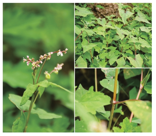 ●描述:一年生草本。茎直立,自基部分枝,具纵棱。叶卵状三角形,顶端渐尖,基部心形,由下至上叶柄渐短至近无,膜质托叶鞘偏斜。花序总状,腋生或顶生,极稀疏,间断,花梗细弱,顶部具关节,花被5深裂,椭圆形,淡红色;雄蕊8枚,花柱3枚。瘦果宽卵形,具3条锐棱,有时沿棱生狭翅,有光泽,突出花被之外。