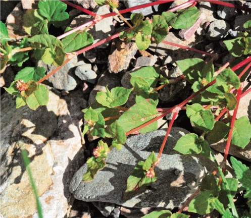 ●描述:一年生草本。高达15厘米。茎基部分枝,无毛。叶卵形或宽卵形,无毛,基部宽楔形或近平截,有时沿叶柄微下延;叶柄与叶片近等长或较叶片长,上部具窄翅,托叶鞘无毛,顶端平截。头状花序,花序梗上部被腺毛;苞片卵形或宽卵形,疏被腺毛;花被5裂至中部,淡红或白色,花被片楠圆形;雄蕊7~8枚;花柱3枚,中部连合。瘦果卵形,具3条棱,黑色。