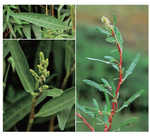 ●描述:多年生草本。茎外倾或近直立,自基部分枝,无毛。叶片长椭圆形或披针形,无毛,顶端急尖或钝,基部戟形或楔形,边缘全缘;托叶鞘筒状,膜质,上部偏斜,开裂,无毛,易破裂。花序圆锥状,顶生,花排列稀疏,通常间断;苞片漏斗状,通常每1枚苞片内具4~6朵花;花梗中上部具关节;花被5深裂,黄绿色;雄蕊7~8枚,稍短于花被,花柱3枚,柱头头状。瘦果卵形,具3条棱。