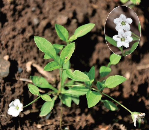 ●描述:多年生草本。茎单生,直立,基部分枝,具2列柔毛。茎中部以下叶片倒披针形,顶端尖,基部渐狭成柄;中部以上的叶片倒卵状披针形,基部疏生缘毛。开花受精花顶生或腋生;花梗被柔毛;萼片5枚,披针形,绿色,外面被柔毛,边缘具缘毛;花瓣5枚,白色,长圆状倒披针形,长于萼片,顶端钝圆或急尖;雄蕊10枚,花药紫色;花柱2~3枚;闭花受精花腋生;花梗短;萼片4枚,披针形;花柱2枚,极短。蒴果卵圆形,稍长于宿萼,4瓣裂。