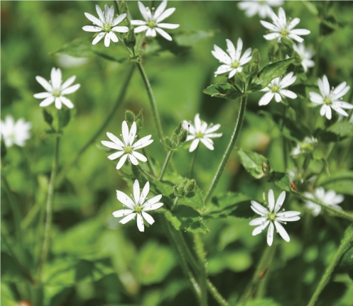●描述:一年生草本。全株被疏腺柔毛。茎铺散,俯仰,具四棱,基部稀疏分枝。基生叶卵形,具柄;茎中部叶片长圆状卵形,顶端渐尖,基部心脏形,全缘,两面被疏柔毛。聚伞花序顶生;花梗细,被白色柔毛;萼片5枚,披针形,顶端急尖,外面被疏短柔毛;花瓣白色,2深裂达近基部,稍长于萼片;雄蕊10枚,稍短于花瓣;花柱3枚,线形。蒴果卵圆形。