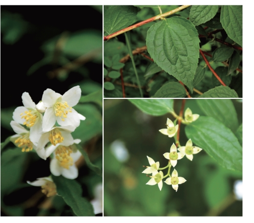 ●描述:灌木。叶卵形或卵状椭圆形,花枝上叶较小,先端渐尖,稀急尖,基部圆形或阔楔形,边近全缘或具疏齿,两面均无毛或上面被糙伏毛,下面仅叶脉被长柔毛;叶脉稍离基出3~5条。总状花序有花5~7朵;花萼紫红色,外面疏被糙伏毛,萼筒钟形,与裂片间无缢纹,裂片卵状三角形,顶端急尖;花瓣白色,长圆状卵形,背面基部疏被柔毛;雄蕊28~30枚;花柱上部稍分裂,基部有时被毛,柱头棒形。蒴果倒卵形。