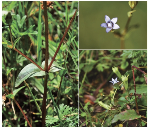 ●描述:一年生草本。茎直立,分枝,稀不分枝。基生叶少数,长圆形或长圆状匙形,先端圆;茎生叶卵状披针形,茎上部及分枝叶小,半抱茎。聚伞花序或单花顶生;花5数;花萼开展,长约花冠1/4,裂片卵状三角形、披针形或窄椭圆形,先端尖,边缘被糙毛花冠淡蓝色,具深蓝色脉纹,筒形或宽筒形,浅裂,裂片直伸,椭圆状三角形、卵状椭圆形或卵状三角形,喉部具一圈白色副冠,副冠5束,上部流苏状裂片先端尖;花丝疏被柔毛。