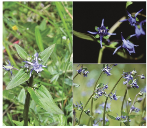 ●描述:一年生草本。茎直立,无毛、四棱形。基生叶椭圆形,有时略呈圆形,先端圆形或急尖呈钝头,基部渐狭呈宽楔形,全缘,叶脉3条;茎生叶卵形、椭圆形、长椭圆形或卵状披针形,先端圆钝或急尖,基部圆形或宽楔形,全缘,叶脉5条。聚伞花序腋生和顶生;花4数;花萼裂片椭圆形或卵形;花冠蓝色或紫色,裂片卵圆形或椭圆形,先端具小尖头,距向外水平开展。蒴果宽卵形,淡褐色。