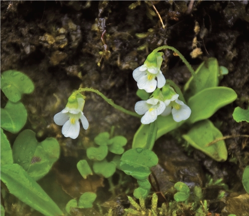 ●描述:多年生草本。叶3~13片,基生呈莲座状;叶片长椭圆形,边缘全缘并内卷,顶端钝形或圆形,基部宽楔形,上面密生多数分泌粘液的腺毛。花单生;花萼2深裂,上唇3浅裂,裂片卵圆形,下唇2浅裂,裂片卵形;花冠白色,距淡黄色,上唇2裂达中部,裂片宽卵形至近圆形,下唇3深裂,中裂片较大,圆形或宽倒卵形,顶端圆形或截形,侧裂片宽卵形;距圆柱状,顶端圆形。花丝线形,弯曲;花柱极短;柱头下唇边缘流苏状,上唇微小。蒴果卵球形至椭圆球形。