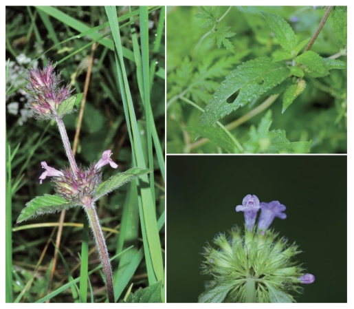 ●描述:多年生柔弱草本。茎匍匐生根,上部上升,弯曲,四棱形,被疏柔毛。叶卵圆形,先端锐尖或钝,基部阔楔形至近圆形,边缘在基部以上具向内弯的细锯齿,上面榄绿色,下面略淡,两面疏被短硬毛。轮伞近球状,彼此远隔;苞片针状,绿色;花萼管状,绿色,外面被白色缘毛及腺微柔毛,上唇3枚齿,齿三角形,具尾尖,下唇2枚齿,先端芒尖;花冠粉红色,略超出花萼,冠檐二唇形,上唇直伸,先端微缺,下唇3裂;雄蕊及雌蕊均内藏。