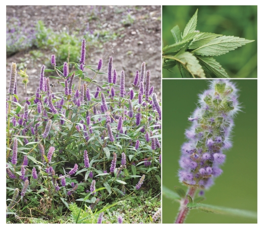 ●描述:草本。茎直立,自基部多分枝。叶长圆状披针形至椭圆形,先端急尖或微钝,基部宽楔形或近圆形,边缘在基部以上具锯齿。穗状花序长圆形或近圆形,密被紫色串珠状长柔毛,由密集的轮伞花序组成;最下的一对苞叶与叶同形,向上呈苞片状,卵圆状圆形;花萼钟状,萼齿5,后3齿稍长,果时花萼膨大,近球形;花冠小,淡紫色,冠檐二唇形,上唇直立,先端微缺,下唇稍开展,3裂。雄蕊4枚,前对较长,微露出;花柱微伸出,先端近相等2裂。