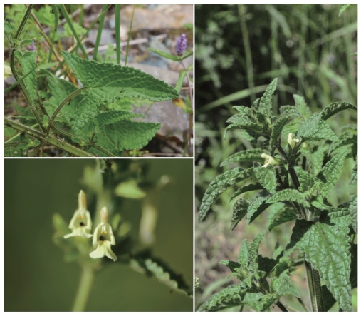 ●描述:一年生或二年生草本。茎直立,多分枝,密被有黏腺的长硬毛。叶片戟形或戟状三角形,先端变锐尖或钝,基部浅心形或截形,边缘具圆齿。轮伞花序4~6朵花,上部密集下部疏离组成顶生或腋生的总状花序;苞片边缘波状或全缘。花萼二唇形,上唇三角状半圆形,先端具3个短尖头,下唇浅裂成2枚齿,齿三角形;花冠黄色,冠檐二唇形,上唇直伸,长圆形,全缘,下唇3裂,中裂片倒心形,先端微缺,基部收缩,侧裂片斜半圆形;花柱伸出。小坚果倒卵圆形。
