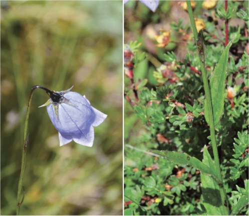 ●描述:多年生草本。茎常数支发自1条茎基上,不分枝,常无毛,稀有倒生短毛或长毛,高达60厘米。基生叶心形或近三角状卵形;茎生叶宽线形,稀窄椭圆形或卵状披针形,全缘,无毛,稀有毛,无柄或有时茎下部的叶具短柄。单花顶生或数朵花排成假总状花序;花萼筒倒圆锥状或倒卵状圆锥形,裂片钻形,全缘,稀有瘤状齿;花冠蓝或蓝紫色,钟状,裂片4~7毫米,卵状三角形;花盘粗筒状;花柱通常稍伸出花冠。蒴果卵状长圆形。