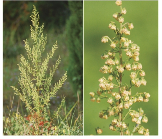 ●描述:一年生草本。植株有浓烈的挥发性香气。叶纸质,绿色;茎下部叶宽卵形或三角状卵形,三至四回栉齿状羽状深裂,每侧有裂片5~8枚;中部叶二至三回栉齿状的羽状深裂;上部叶与苞片叶一至二回栉齿状羽状深裂。头状花序下垂或倾斜,小苞叶线形,在分枝上排成总状或复总状花序,并在茎上组成开展、尖塔形的圆锥花序;总苞片3~4层;花深黄色,雌花10~18朵,花冠狭管状,花柱伸出花冠外,先端2叉;两性花10~30朵,花冠管状,花柱近与花冠等长,先端2叉。