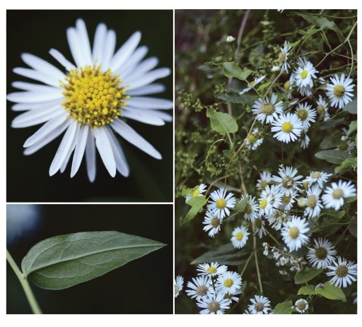 ●描述:木质草本或亚灌木。茎中部叶窄卵圆形或披针形,全缘,稀中部以上有浅锯齿;上部叶卵圆状或线状披针形;具离基3出脉及2~4对细侧脉。头状花序排成伞房状,有苞叶;总苞半球形,总苞片2~3层,覆瓦状排列,外层长圆状或匙状线形,内层卵圆披针形,舌状花约30个,舌片白或浅紫红色;管状花外面有短毛。