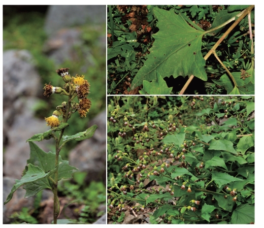 ●描述:多年生草本。茎疏被柔毛或近无毛中部叶三角形,边缘具浅波状齿,上面无毛,下面疏被柔毛。基脉3~5条;最上部叶披针形,具短柄。头状花序数个至10个,下垂,在茎端和上部叶腋排成伞房状,花序梗长1~3厘米,疏被卷毛和腺毛,具3~8枚线形小苞片;总苞钟状,总苞片8~10枚,长圆形,长8毫米,有髯毛,边缘宽膜质,背面疏被白色柔毛和腺毛;小花约38个,花冠黄或黄褐色。