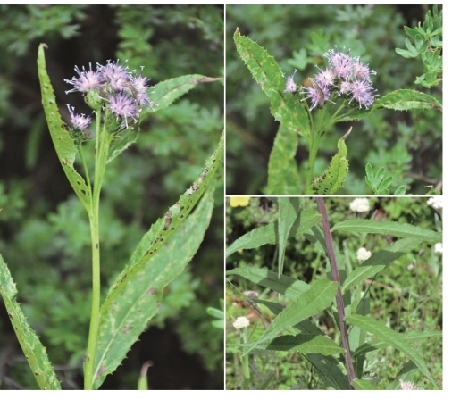 ●描述:多年生草本。茎直立,单生。下部及中部茎叶线状长圆形,顶端长渐尖,基部渐狭成深心形而半抱茎的小耳,边缘有真长尖头的深密齿,上面有短糙毛,下面有小腺点;上部茎叶小,与下部及中部茎叶同形,但渐小。头状花序多数,在茎端排成密集的伞房花序;总苞钟状或卵状钟形;总苞片4~5层;小花紫色。
