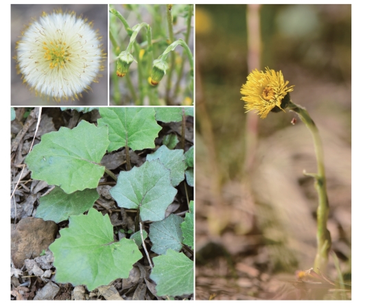 ●描述:多年生草本。早春花叶抽出数个花莛,有鳞片状,互生的苞叶,淡紫色。后生出基生叶阔心形,具长叶柄,叶片边缘有波状疏齿。头状花序单生顶端,初直立,花后下垂;总苞片1~2层,总苞钟状,总苞片线形;边缘有多层雌花,花冠舌状,黄色;柱头2裂;中央的两性花少数,花冠管状,顶端5裂。瘦果圆柱形;冠毛白色。
