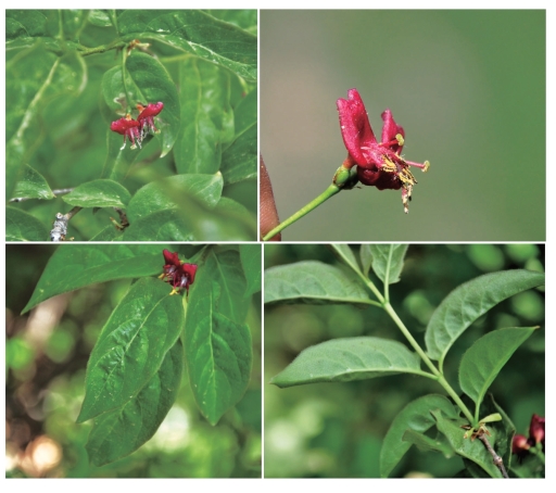 ●描述:落叶灌木。叶纸质,卵状椭圆形至卵状披针形,顶端渐尖或长渐尖,基部圆或微心形或宽楔形,边缘常不规则波状起伏或有浅圆裂,有睫毛,两面有疏或密的糙毛及疏腺。苞片条形;小苞片甚小,分离,卵形至矩圆形;相邻两萼筒分离,萼齿微小,顶钝、波状或尖;花冠紫红色或绛红色,很少白色或由白变黄色,唇形,筒甚短,基部较细,具浅囊,向上突然扩张,上唇直立,具圆裂。果实先红色后转黑色,圆形。