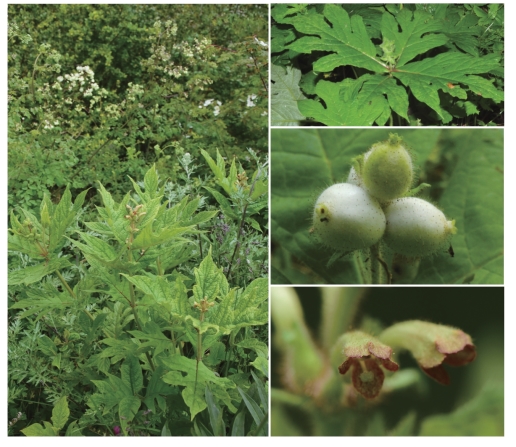 ●描述:多年生草本。茎开花时顶部生分枝1对,中空。叶羽状深裂,基部楔形至宽楔形,近无柄,轮廓倒卵形至倒卵状椭圆形,裂片1~3对,顶端渐尖;茎基部的初生叶有时不分裂。聚伞花序对生,各具3朵花,有时花序下具卵全缘的苞片,在茎或分枝顶端集合成短穗状花序;萼筒被刚毛和腺毛,萼裂片三角形;花冠黄绿色,筒基部弯曲,一侧膨大成浅囊,裂片圆而短,内面有带紫色斑点。果卵圆,肉质,具3条槽,冠以宿存的萼齿。
