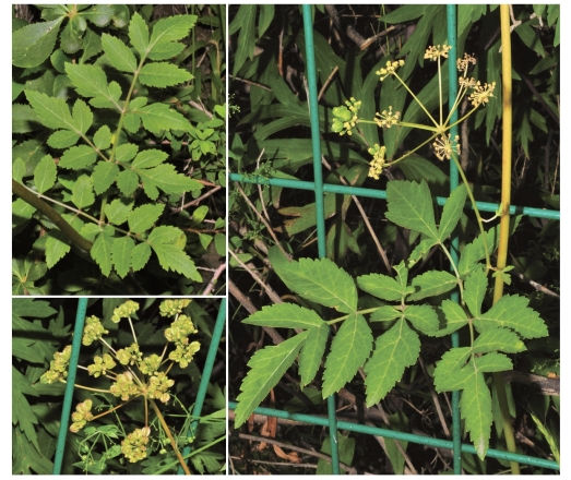 ●描述:多年生草本。基生叶一至二回羽状全裂,裂片2~4对;叶柄基部膨大成叶鞘;茎上部叶为一至二回羽状全裂,叶片轮廓为阔卵形;顶生叶简化成囊状叶鞘。复伞形花序,伞辐9~19条;无总苞片;小伞形花序密集或近球形,有花18~40朵;小总苞片6~10枚,披针形;花瓣白色或黄白色,稀紫红色,长卵形;花柱基扁平,紫黑色,花柱短而叉开。果实长圆形至卵圆形,侧棱翅状,背棱线状;背棱槽内有油管1条,侧棱槽内有油管2条,合生面油管2条。