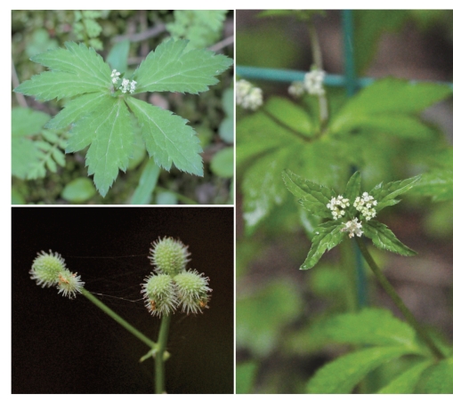 ●描述:多年生草本。茎直立,无毛。基生叶肾圆形或圆心形,掌状3~5裂,裂片边缘有不规则的重锯齿;叶柄基部有宽膜质鞘;茎生叶掌状分裂,裂片边缘有重锯齿或大小不等的缺刻。花序2~4回分叉;总苞片叶状、对生、不分裂或2~3浅裂;伞形花序2~4出,小总苞片细小;小伞形花序有花6~7,雄花3~5;花瓣白色或绿白色,顶端内曲;两性花常3,萼齿和花瓣的形状同雄花;花柱向外开展。果实卵形至宽卵形,表面有钩状皮刺;油管不明显。