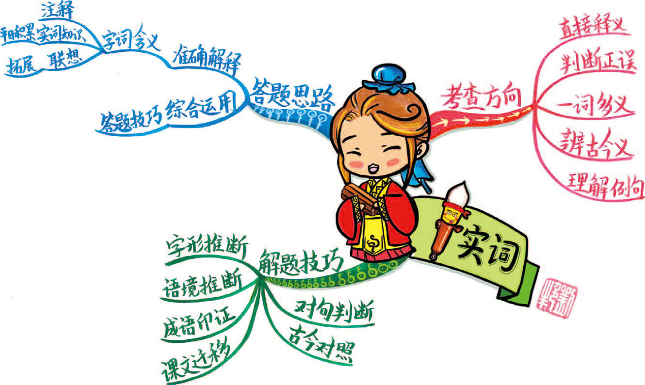 技巧三:成语印证法。成语中保留着大量的文言词义,可以用熟知的成语来推断文言文中的实词词义。
