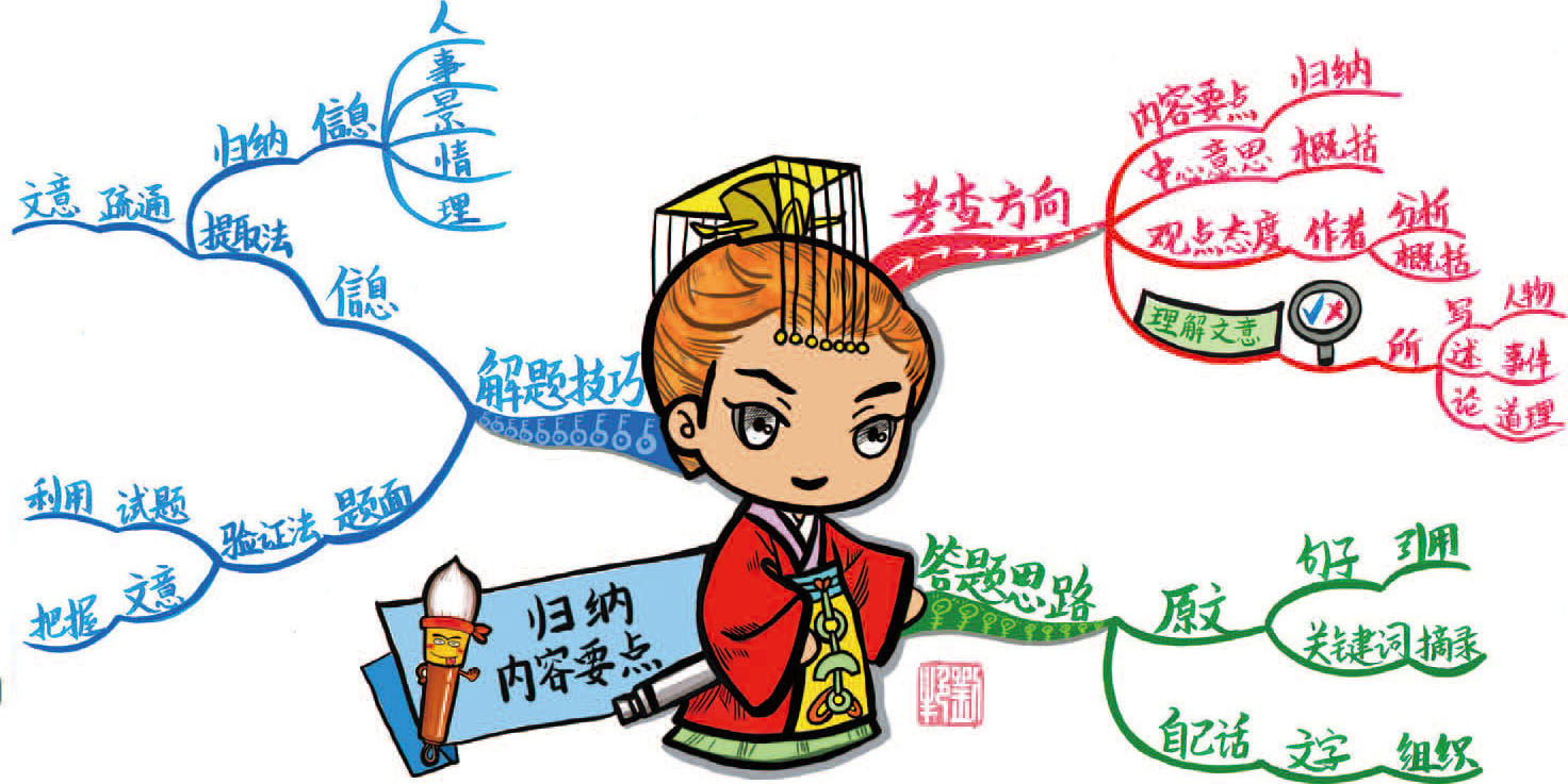 理解基本内容并归纳内容要点,无论提取文章基本内容还是揣摩作者的思想感情,都应在理解文意、整体把握和综合梳理的基础上进行分析。