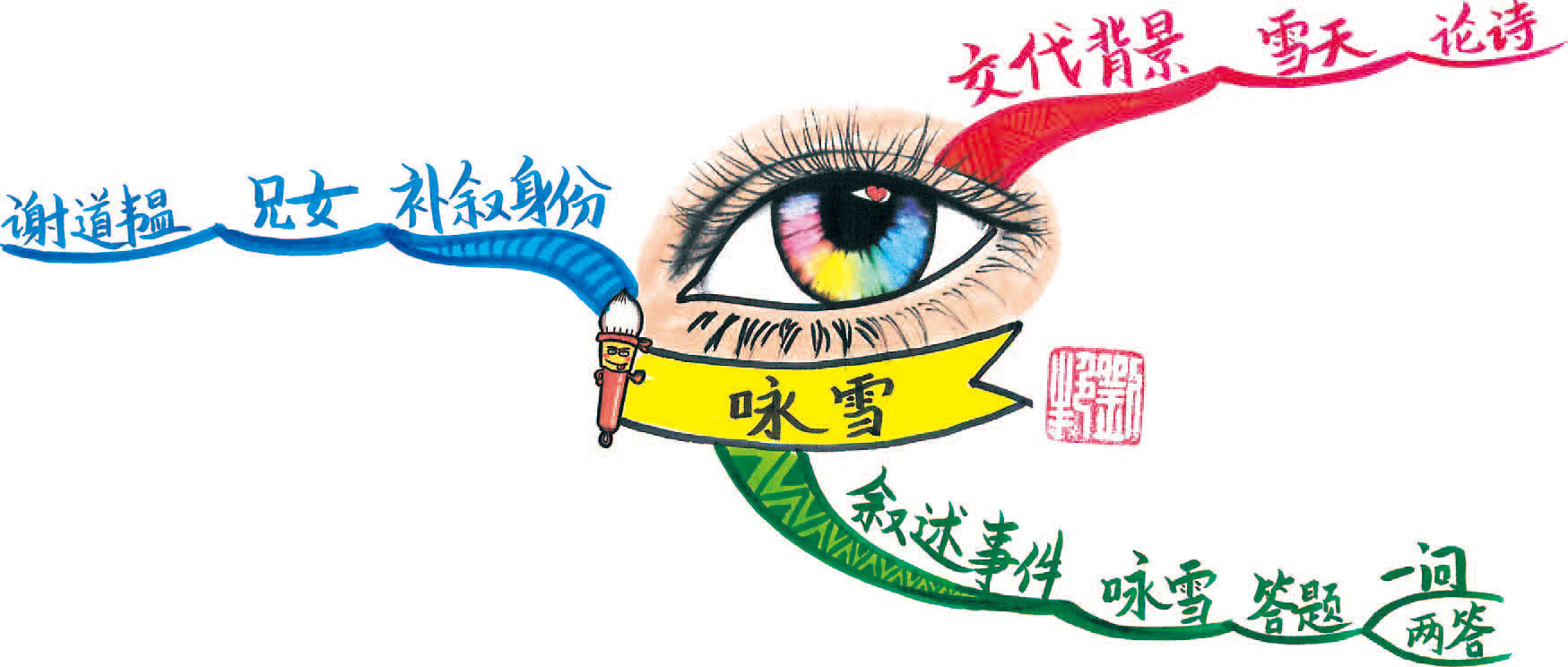 “咏雪”即歌咏白雪,题目概括了文章的内容,揭示了文章的线索。