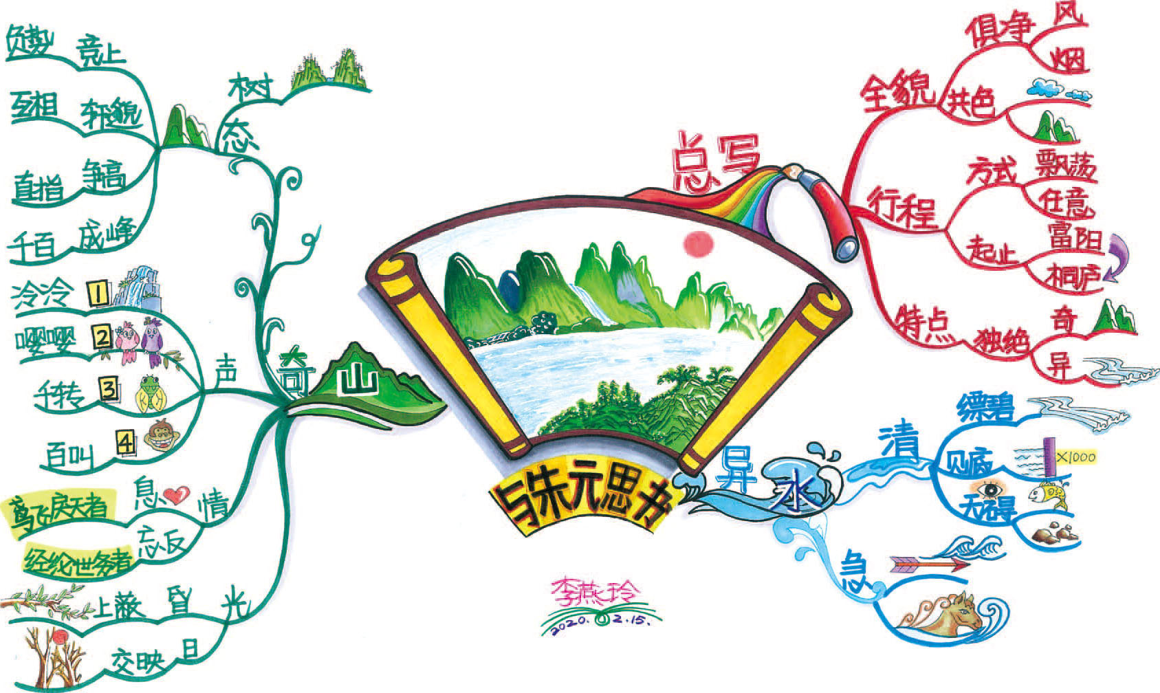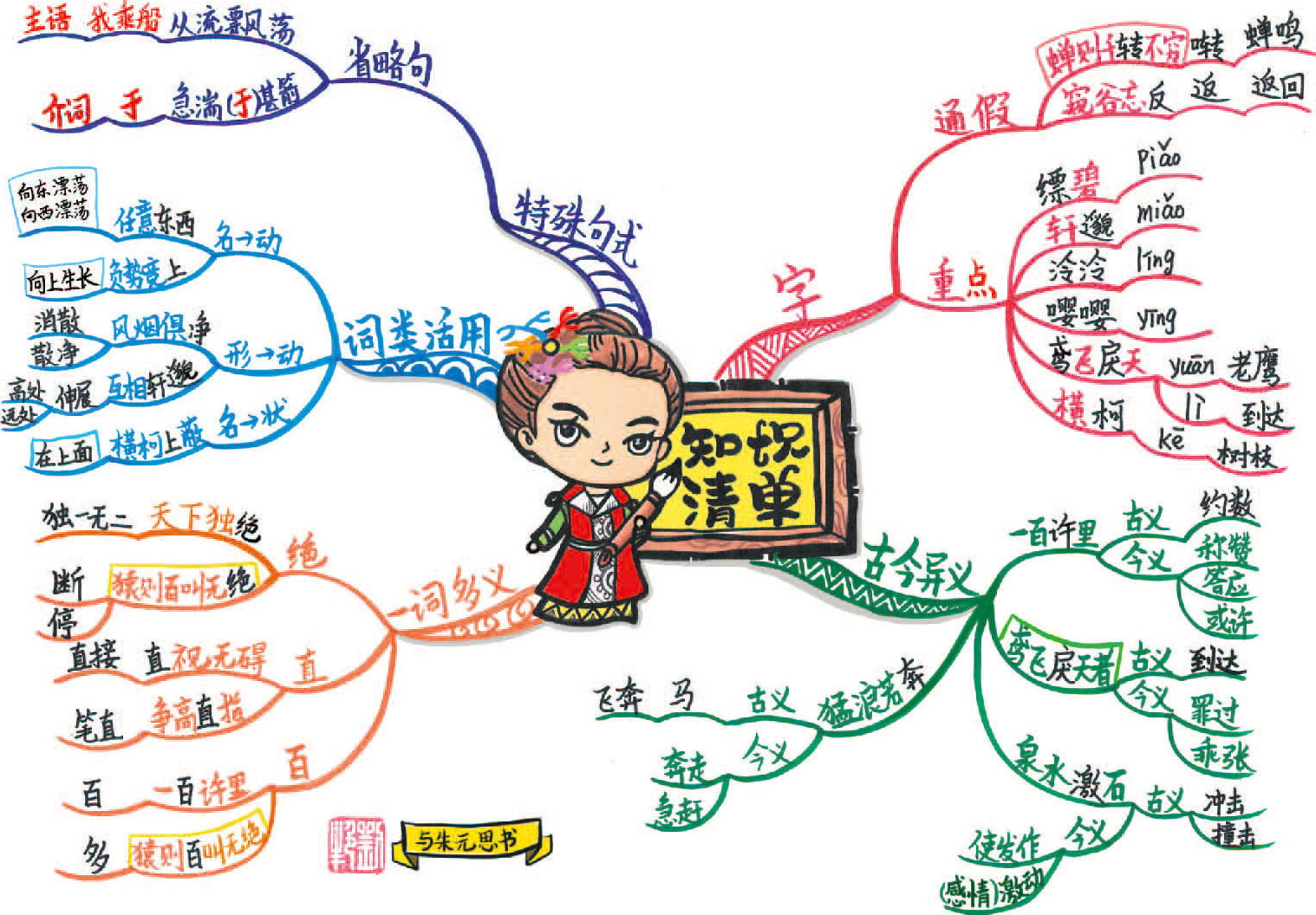 本文的逻辑结构是比较好把握的,因此绘制时需要把思考的重点放在用词的准确性上,尽量做到词性统一、内容对应。这篇文章的描写多,形象性好,所以小图标的使用比较多,除了简明的表达,同一内容尽量用相同的图来表现,以提升内容的关联性,这些都可以很好地提高记忆的效率。