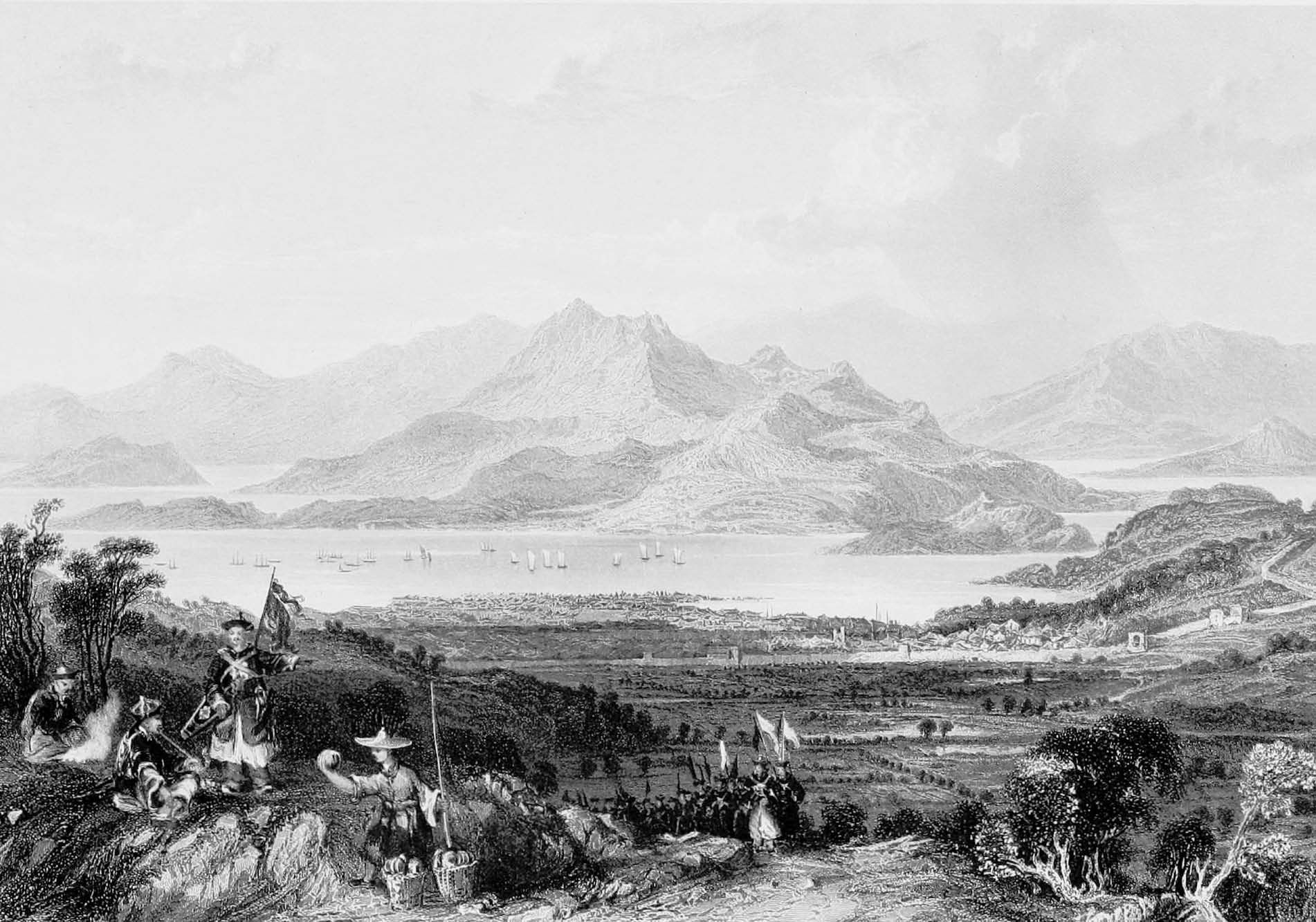 舟山群岛的主岛——舟山岛,长二十英里,六至十英里宽,方圆五十英里,是一片拥有县级建制的行政区域,县治设在定海,隶属宁波府管辖。扬帆海上,眼前的舟山岛风光旖旎、如诗如画——明暗色彩变幻多端,斧劈刀削一般的山峰此起彼伏、充塞天际,幽深的峡谷蜿蜒其间,直抵海岸边人工修建的防波堤。舟山远观如海上仙山,近看更是风光无限。青峦如聚,披一身天光云影俯瞰散碎而肥沃的谷地。水稻、棉花、玉米、甘蔗、烟草、桃李之属,高下错落,疏密有致,将散碎的田园装扮得生机盎然、楚楚有致;茶树、岩栎、野草莓点染着浅沟深壑;再看碧空下点点闪烁的峰顶,春夏秋冬总是披着绿色的盛装,恍若抛落人间的玉簪,玲珑剔透、黛碧生烟。高草灌木遍布的山坡上,但见枝繁叶茂的大树攒聚成堆,掩映着雕梁画栋的庙宇和花团锦簇的墓地。站在开阔海域里航行的船头远望舟山岛,黑黢黢的烟雾缭绕的峡谷地带事实上得到了广泛的开发利用,谷间狭长的冲积带田畴交错,茄子、包谷、豆类等作物条块分割,在山脚下的平野中描画成忽隐忽现的巨大棋盘。舟山岛上没有天然的河系,但大小山头清溪如注,当地农人截流入坝,涵养水源、保护水质的工作做得非常到位。集沙量较大的干渠,加上海水内灌淹没低地形成的回水沟,共同构成舟山岛上的可通航水域。鸦片战争期间,英军攻占定海后二十六团曾在舟山岛山地短期驻扎,上面建有本岛最重要的水库之一。水库周边围着一大圈民房,这是一个家族聚居地。中国人注重亲情伦理,父母在,子不投异乡,子子孙孙几代同堂,家庭成员的数量不断膨胀,家宅——包括宗祠、仓库等附属设施——亦愈扩愈大,以血缘关系纽带凝聚成的村落应运而生。村落外缘的房屋看上去与里圈的建筑物别无二致,但两者的功能大相径庭。舟山岛常年高温多雨,且富含腐殖质的土壤异常肥沃,故此水稻产量远大于消费量,余粮酿制的米酒除满足本地需求之外,尚可供应外地市场。那些散落于村头巷尾的小屋,就是酿酒的家庭作坊。