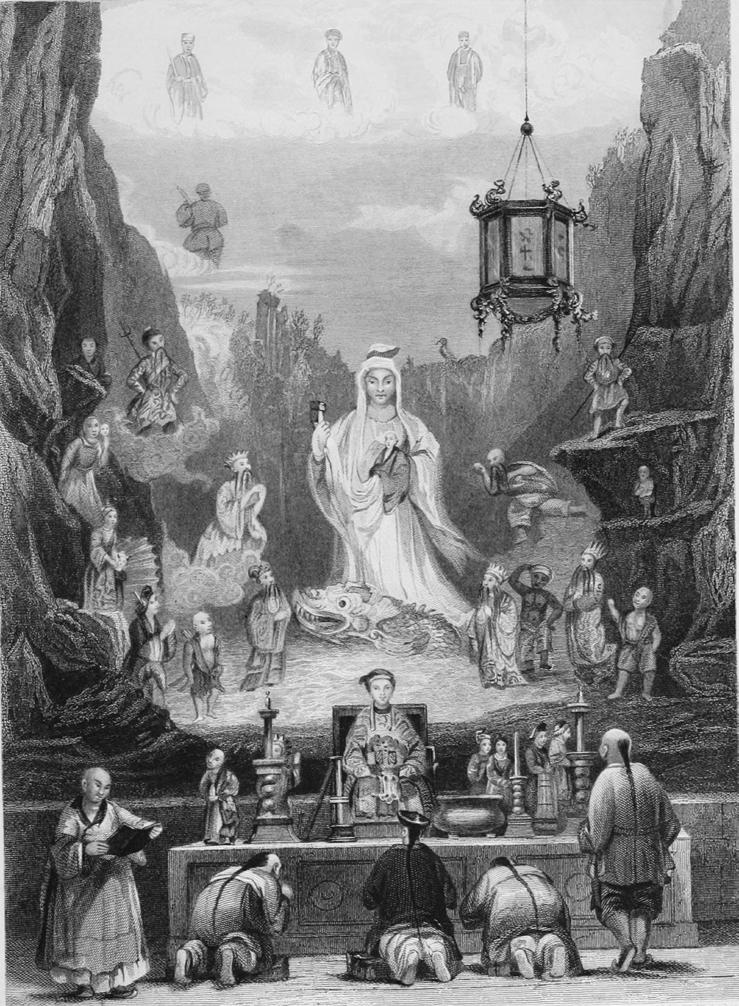 定海城外有一处小峡谷,草木葳蕤,美景如画。谷内散落着数处建筑精美、空间宽敞的别墅;峡谷内一侧异峰突起,一座龙脊莲花式的卷檐八角亭兀立山巅,俯瞰峥嵘山原、遥对恐怖要塞、眺望波光粼粼的大海——这处建筑便是定海人的宗祠,祥凝瑞集,游人如织。舟山群岛的开发历史相当久远,遍布丘壑平野的人行便道就是最有力的证据,其中最引人注目的一条,跨越灌渠、穿山越脊,宛若临风飘转的丝带,将定海城与港口连为一体。有人曾目睹满清地方大员乘坐一顶轿子攀山而上,亲临那座常年开放的宗祠祭祖慰灵,不过舟山的小路向以坎坷崎岖著称,并不是散步冶游的好去处。舟山有土的地方就有田,从山脚到山巅、从村头到水边,到处阡陌纵横、稻椒成畦,富含腐殖质的土壤再经农民勤劳的双手精心侍弄,回报自然丰厚——用丰衣足食形容当地人的生活,恰如其分。舟山的主要物产包括稻谷、棉花、甘薯、茶叶,以及乌桕树的种子炼制的蜡烛等,自用之外,常有节余推向市场。舟山人运送货物基本依赖人力:先以竹筏一类平底船具沿小溪、人工河载货出山,然后以中国人惯用的肩挑方式转送港埠。司徒塔特上尉笔下的舟山早为西方人所熟知,画中数艘准备接货或卸货的小船驶抵河岸,对面是大户人家的宅邸,脚夫出入堂下、船工挥篙阶前,一派生机勃勃的繁忙景象;而这家人的田畴就隐在屋后,给人无限遐想的空间。中国人追求的山水之美、园林之胜,舟山群岛做了最好的诠释。仰赖大自然的恩赐和本土人士坚持不懈的努力,枯瘦与丰腴、简约与繁复、淡雅与华丽,这些景观美不可或缺的构成元素,在这里得到淋漓尽致的体现。