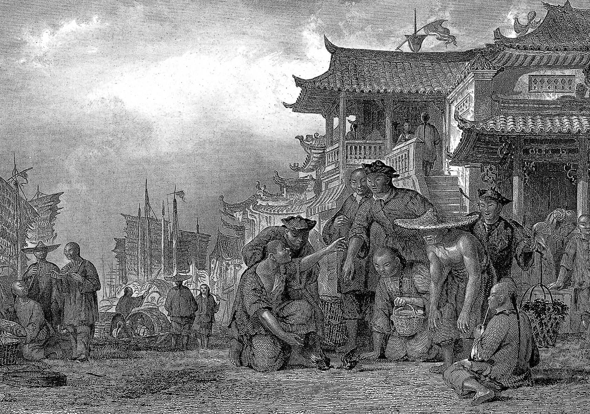阿洛姆先生摄取的赌博场面出现在厦门古墓群地段内:一叶竹席铺在草甸之上,数名赌徒团团围定掷骰子的“庄家”,个个神情专注,赌得忘乎所以。周围是如诗如画的美景,身边是长眠地下的先祖,他们对这一切视而不见,玷污山水、唐突亡灵,这与以“孝”治天下、讲究“死者为大”的中华民族传统伦理道德背道而驰。