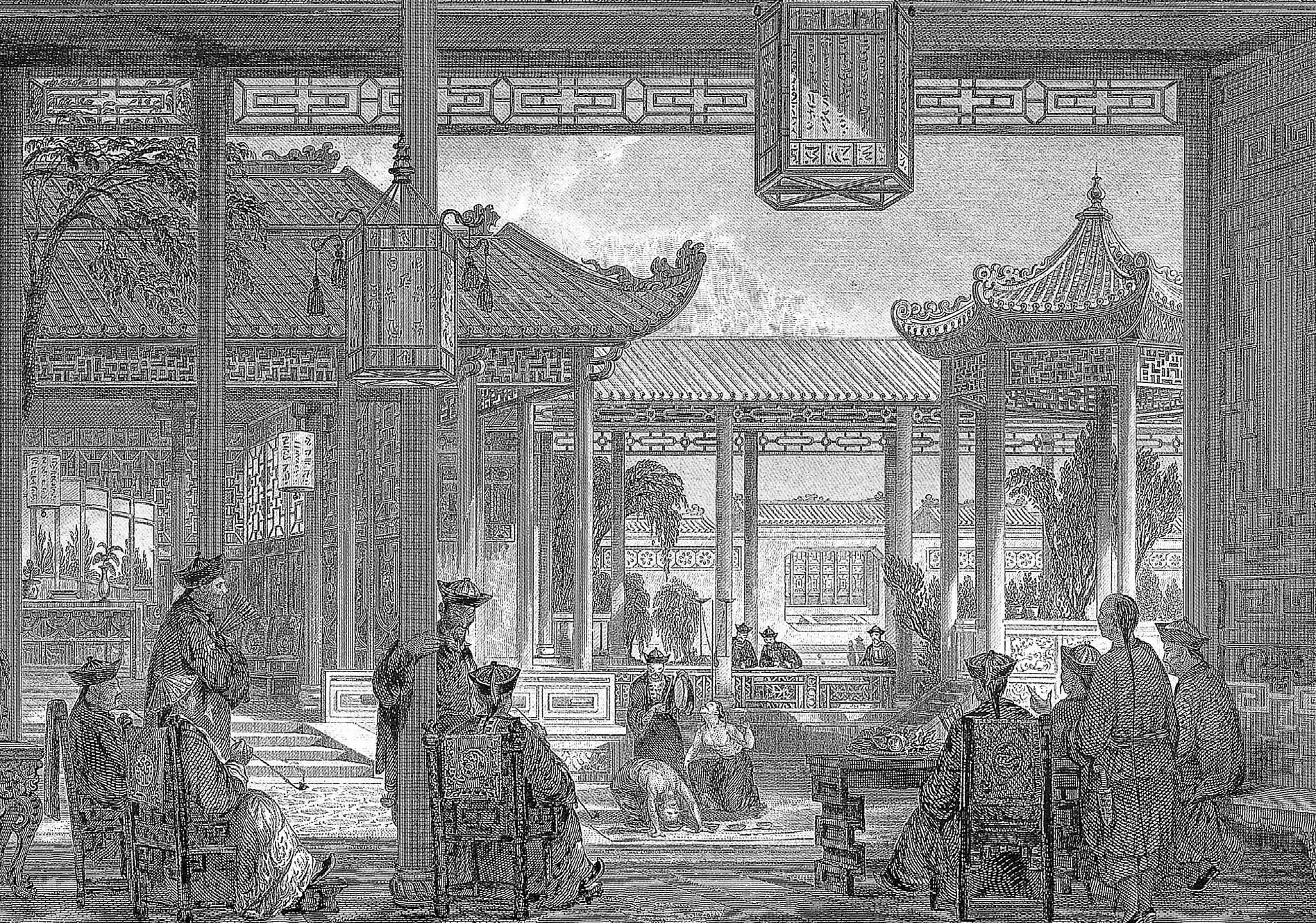 一进侯门深似海。中国官僚的家宅,与其说是权焰正炽的社会头面人物享受天伦之乐、交接各种人的场所,不如说是完美呈现了中华民族建筑文明的艺术品。在权力的丛林里摸爬滚打,凭着个人才智与懿德一步步跻身高位,满清政府大员的身后都有一部辉煌的奋斗史。地位在为他们带来尊荣的同时,也对他们产生了相应的操守压力;他们屋宇之内的表现自然跟德行相符。大清帝国达官贵人的府邸内,从餐厅到普通的居室一律雕梁画栋,硬木家具、精美字画是每个家庭的标准配置。中国人以热情好客著称,每有贵客临门,家宴都举办得非常隆重:当庭摆放一张同样镂刻有精美图案的大饭桌,上摆插满鲜花,或者填塞一些香料的景泰蓝之类的奢华花瓶,桌面正中位置是托放餐具的玻璃、陶瓷或者银制的转盘,客人取用十分方便。虽然在日常生活中很少使用,椅子却也是中国家庭不可或缺的家装设施;富贵之家的木棒更是家中一景:外观奇特,坐垫、蒙布均为高档丝绸制品,描龙绣凤、美不胜收。宴客之时,宾主座次颇有讲究:主人坐在主席位置且座椅略有抬升,客人则按地位的尊卑和年龄的大小分坐两侧,此俗与欧洲文明国家的做法并无二致。