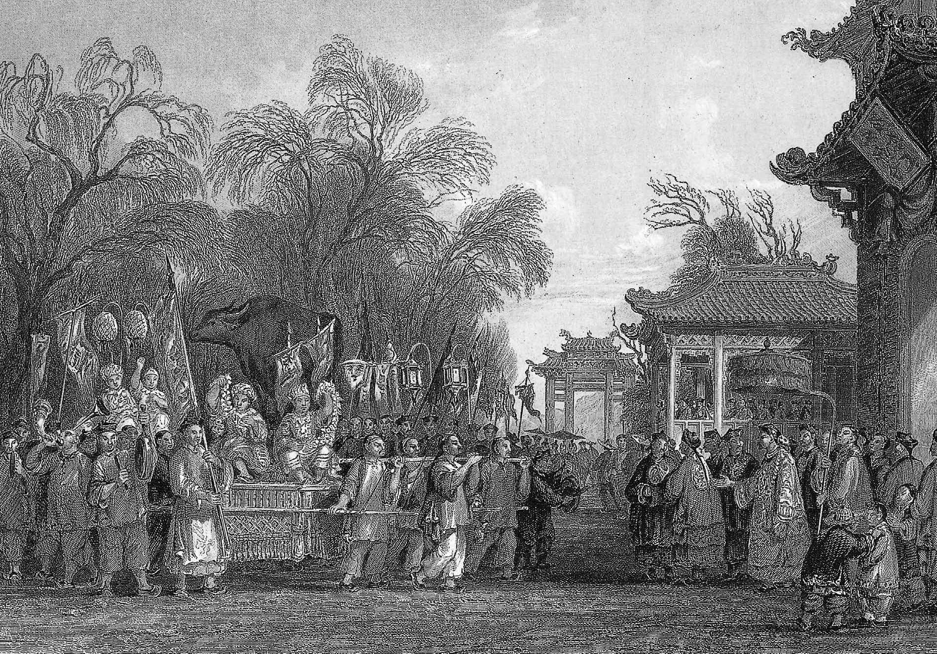 中国人没有“周工作制”的概念,不存在礼拜天休息的问题。中国流行的是五花八门的节日:祭神拜妖魔的节日、纪念民间传奇主角或历史人物的节日、祀祖的节日,等等,一年到头节日不断,祷祝活动也是花样翻新。首先,举办婚丧嫁娶活动的规格不低于任何一个传统节日;其次是端阳节赛龙舟;另一个重要节日,当数流行地域最广、最具民族特色、风格也最为炫目的春节。这个节日从中国阴历年的首日开始,长达四十天的农闲时段基本就是一个节庆季:富人花钱雇请戏班子、穷人搬板凳看戏,男女老少都穿上最体面的行头,游玩数日享受那份难得的闲暇。被各种迷信禁锢头脑的中国人有个习俗,大年夜去附近的寺庙里“接火”:用庙里的长明灯点燃一支蜡烛,然后秉烛回家。如果灯火一路不灭,预示着主人来年交旺运,财源滚滚百事顺遂;如其不然(烛火半道被风吹熄或因其他原因熄灭),主人将触霉头,一年不顺。