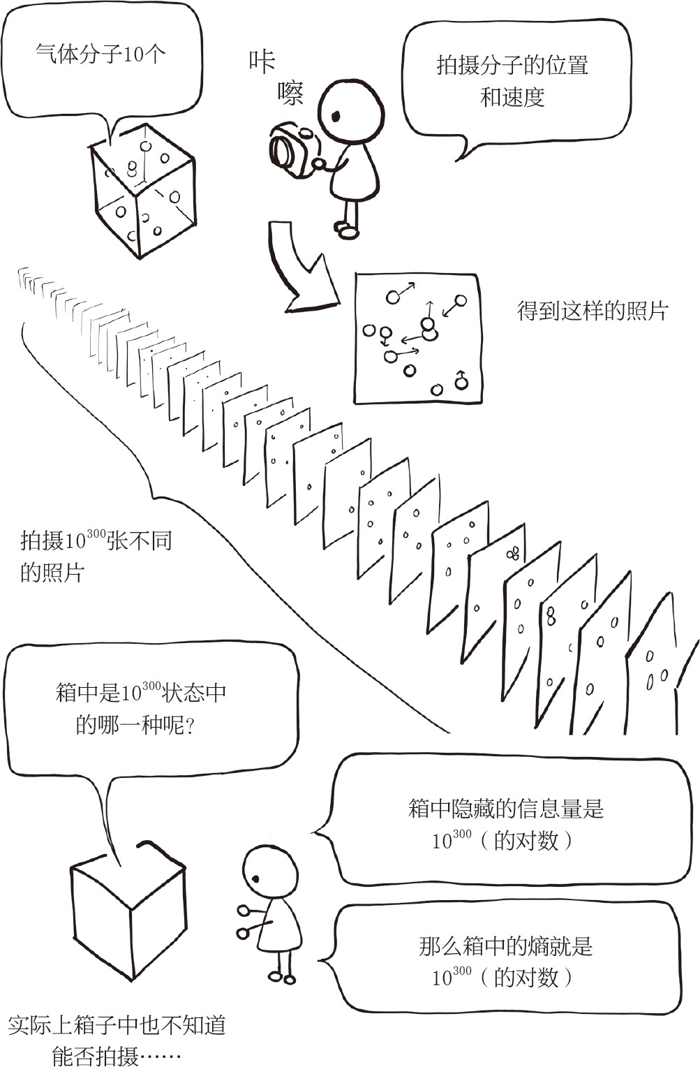 在箱子中放入10种粒子,其状态数量(在室温下)恐怕能达到10300个。以普通数字来表示的话,像1000000……这样,在1的后面需要300个零。