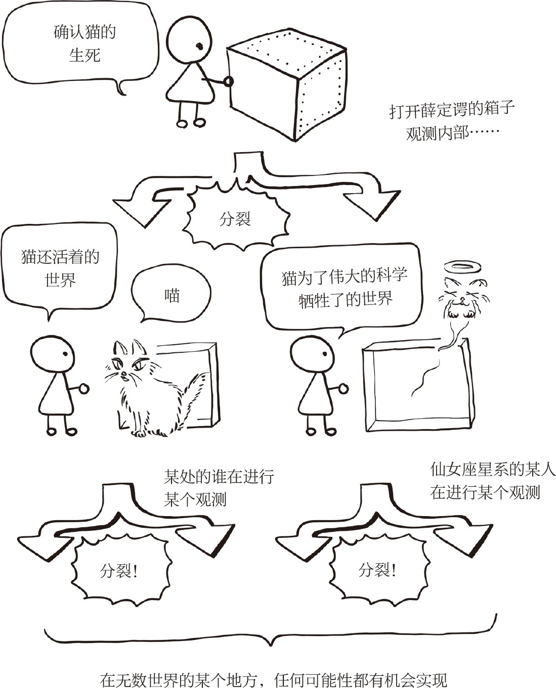按照多宇宙解释,与这个世界的结果截然不同的一切结果都会在别的世界实现(图3-5)。