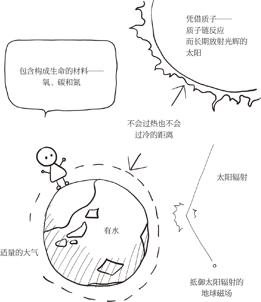 在生命进化的过程中,宇宙究竟给予了我们什么恩惠呢?其实从始至终,宇宙都眷顾着地球(图7-1)。