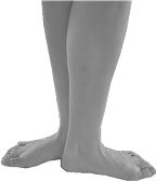 ✧一位站姿:两脚后跟并拢,脚尖向外打开呈一直线,大腿根由内向外旋转,膝盖内侧靠紧,勿撅臀,上身姿态保持不变(图3-2);