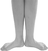 ✧四位站姿:两脚脚尖打开,一脚放于另一脚的正前方,两脚之间间隔一只脚的距离,并且要求一只脚的脚后跟与另一只脚的脚尖在一条直线上(图3-5);