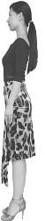 动作要求:双腿并拢,脚跟并紧脚尖打开,挺胸收腹,脖子拉长,肩部下沉,右腿发力向后绷直膝关节,收腹翘臀将身体重心前推,躯干整体朝前,左脚落在右脚正前方,伸直膝盖支持身体(图5-4),上半身微微前倾,手臂自然展开在身体两侧。