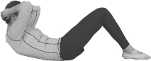 预备姿势:仰卧,双手置于脑后,肘关节打开呈180°,双膝微屈、分开,与肩同宽(图6-1)。