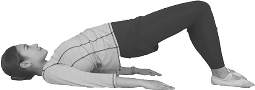 动作要领:背部肌肉收缩用力,使背部、臀部离地(图6-5),越高越好,停留1~2秒,然后轻轻还原,重复16次;接下来动作要求一样,但是速度加倍,重复16次。
