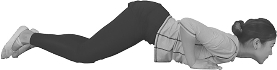 动作要领:双肘弯曲,带动身体一起俯身,尽量做到使身体与大腿呈135°,肩部与身体呈90°(图6-11),要求过程缓慢,然后撑起还原,重复16次。
