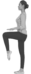 动作要领:单腿依次高抬腿,抬高至触及掌心(图6-13),要求落地轻、有节奏感、不得停顿,双腿交替高抬动作持续30~45秒。