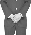 ✧双手五指并拢相叠于小腹前,可要求左手在上,注意不要太僵硬(图7-2)。
