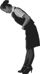 鞠躬表示对他人的尊重,一般在欢迎、再见、致歉或感谢时使用。