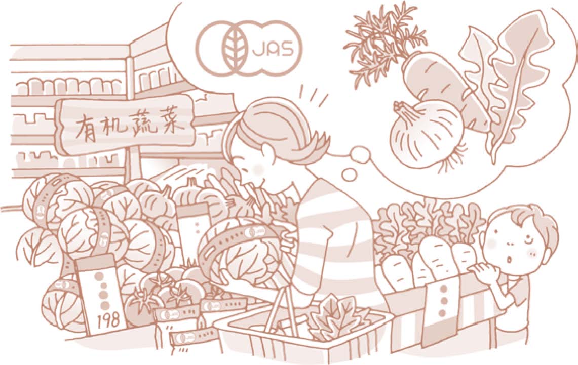 带有“有机JAS标志”的农作物表示这是不依赖农药或化学肥料成长的食物(有机农产品),但并不是代表全部有机农产品完全不用农药。使用了农林水产省制定的安全性很高的农药和无机肥料的农产品,也可以被认定为有机农产品。